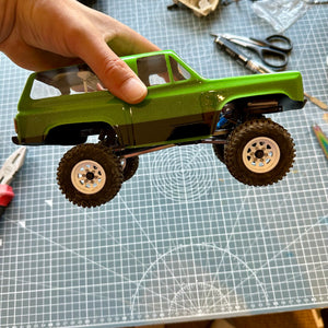 All of our bodies are made to designed to match the Axial SCX24 Chassis and wheelbase.